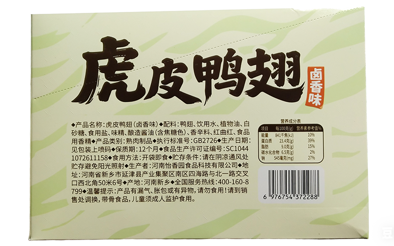 商品名称:敢耀虎皮鸭翅(卤香)