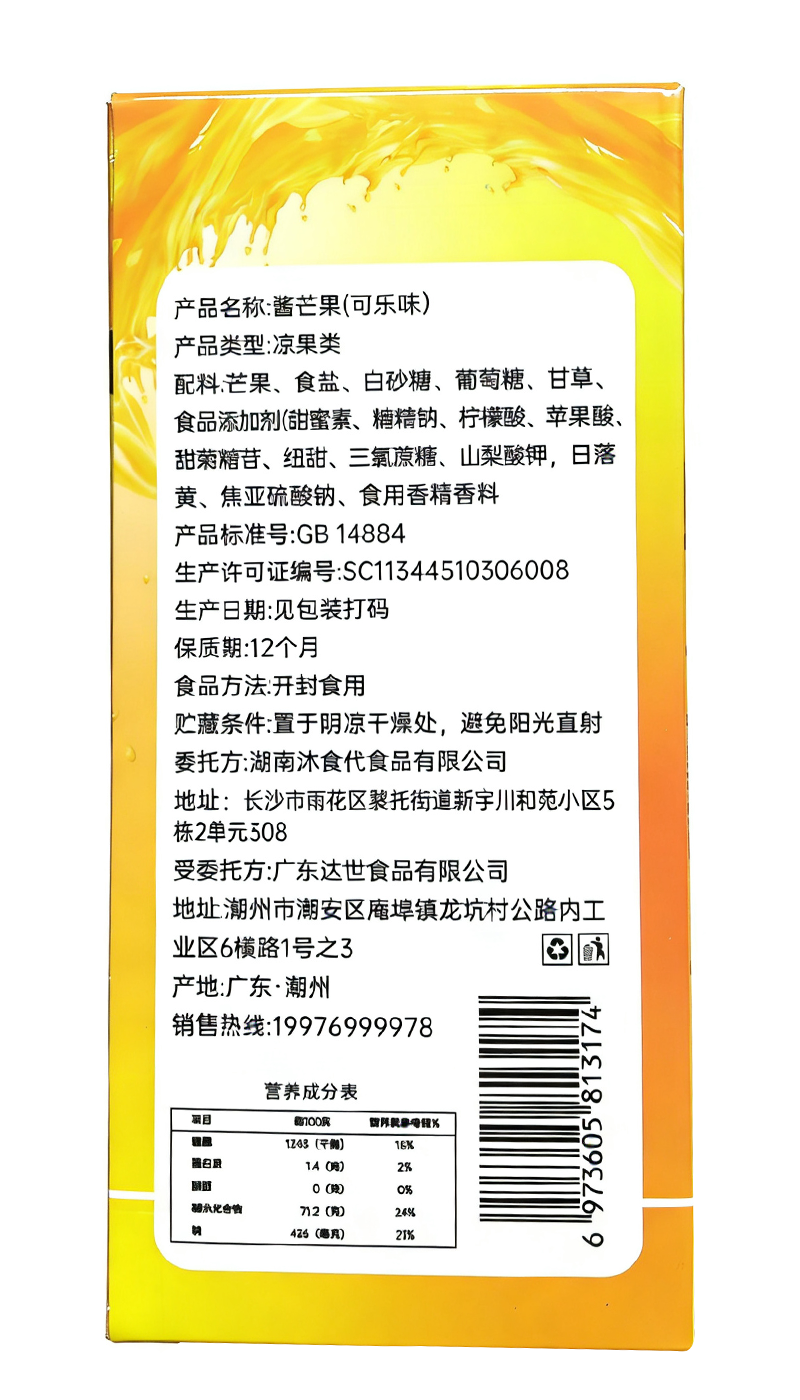 商品名称:沐食代酱芒果(可乐)